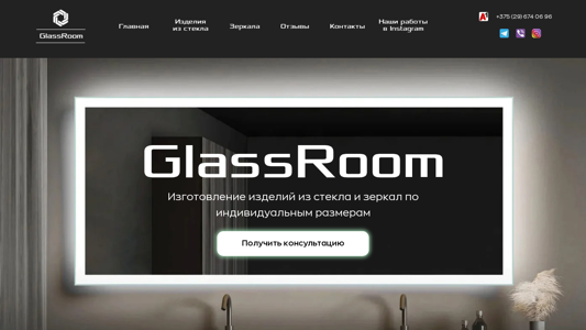 | AI-анализ | The portal GlassRoom is a Belarusian website specializing in the production and sale of glass and mirror items tailored to individual sizes. The website provides information on their offerings, including mirrors, glass doors, shower cabins, and various types of glasswork. Users can find customer reviews and contact information, as well as view the company's work on Instagram. The team at GlassRoom uses high-quality European materials and experienced professionals for manufacturing and installation. They offer custom designs and assume full responsibility for delivery. The website includes a contact form and provides contact information for inquiries via phone, email, Viber, Telegram, and Instagram. Business hours are weekdays from 9:00 to 18:00. |