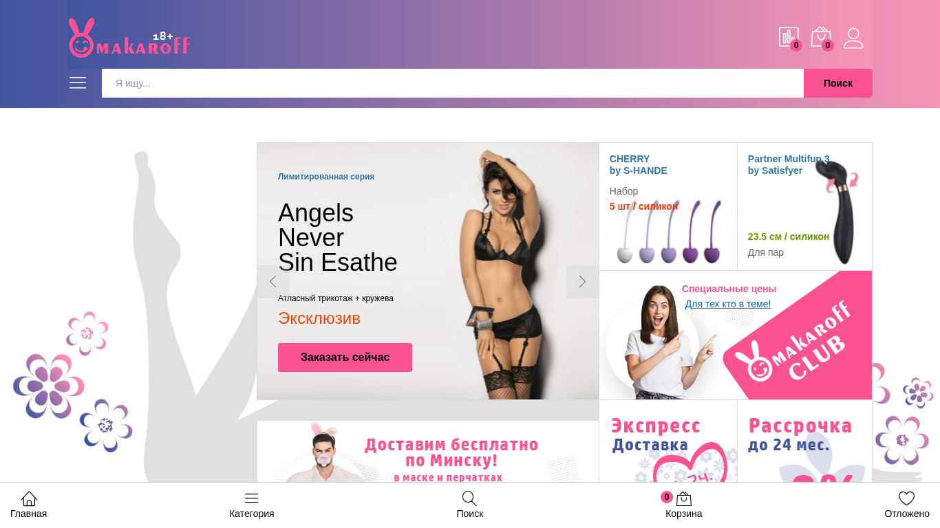 | AI-анализ | This online resource is a Belarusian e-commerce website specializing in the sale of intimate products. The homepage features a selection of items including vibrators, silicone toys, and limited edition collections. The website offers a variety of vibrators, including super-realistic models with heating and rotation features. There are also vibrators designed for couples. The website also sells electronic items, such as stimulators for the clitoris and vaginal balls. Additionally, the website offers a limited number of weekly discounts, ranging from 5 to 10 percent. The website is called 'makaroff.by' and the top keywords are 'вибраторы' (vibrators), 'руб' (rub), 'силикон' (silicone), 'пар' (partner), and 'стимулятор' (stimulator). The website does not currently have any items |