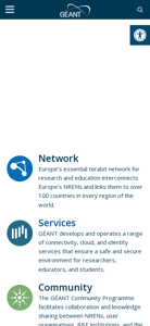 | AI-анализ | --- The web project GÉANT is a collaboration of European National Research and Education Networks (NRENs). It delivers an information ecosystem of infrastructure and services to advance research, education, and innovation on a global scale. The website includes information about Network Europe's essential terabit network for research and education, which interconnects Europe's NRENs and links them to over 100 countries. GÉANT develops and operates a range of connectivity, cloud, and identity services to ensure a safe and secure environment for researchers, educators, and students. The website also features the GÉANT Community Programme, which facilitates collaboration and knowledge sharing between NRENs, user organisations, R&E institutions, and the commercial sector. The CONNECT magazine, website, and weekly newsletter are available for the GÉANT community to explore articles and contribute. The website also highlights GÉANT |