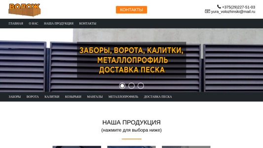 | AI-анализ | This website is for a metal fencing and gate supplier named Volozhinski in Belarus, with locations in Liaховичи and Baranovich. The business has been selling metal profiles, concrete fences, gates, and fence posts for over 20 years. Products include metal fences, metal gates, fence posts, metal roofs, and concrete fences. Clients can contact the company by phone or in person to place orders and inquire about delivery and pickup services. Additionally, the company offers the sale and delivery of sand. |