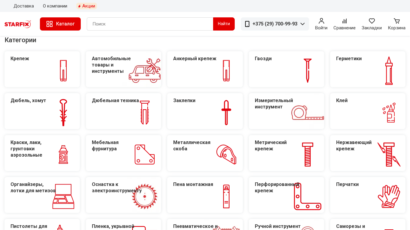 | SEO-описание | Строительный крепеж в Минске с доставкой по РБ. Официальный дилер торговой марки STARFIX. Где купить крепеж - STARFIX.BY. Болты, гайки, шайбы. |