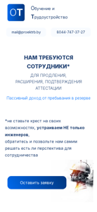 | AI-анализ | --- This website is for a company named ООО «Обучение и Трудоустройство» (Company of Education and Employment) in Belarus. The title and description suggest that the company offers education and employment services. Keywords include 'обучение' (education), 'рудоустройство' (employment), and 'заявка' (application). The top words indicate that visitors can leave an application, and that the company hires for various positions, including passive income opportunities. The company provides assistance in obtaining qualification documents and offers free distance learning. They promise personal and efficient service, and mention that pensioners may receive compensation for their pension upon employment. Requirements for applicants include a higher or secondary special education and a free labor book. The website also mentions opportunities for students and the elderly. The company offers additional benefits for those with a certificate in construction and a |