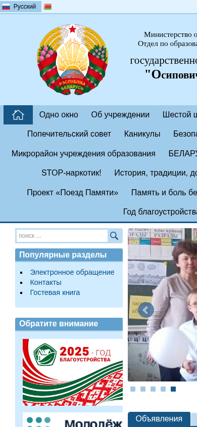 | AI-анализ | --- This website belongs to the state educational institution "Osiповичская средняя школа" (Osiпоvich Secondary School) in Belarus. The title of the website is "Осиповичская д/с- СШ" (Osiпоvich District School). The description section of the website contains information about the school day, services for parents and teachers, safety, kindergarten, active citizen school, and various projects and initiatives. Popular sections include electronic applications, contacts, and a guest book. The website is available in Russian and includes a banner and statistics on website visits. The administration of the website is indicated as the copyright holder. The domain is osipovichi.drogichin.edu.by. |