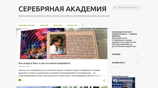 | AI-анализ | This website, titled "СЕРЕБРЯНАЯ АКАДЕМИЯ" (Silver Academy), is an author blog by Nadezhda Manshina about active and healthy aging. The main content includes secrets of healthy living, expert advice, creativity ideas, book and film announcements, and a silver age university (Книголюб творчество бабушкины рецепты УРОКИ МУДРОСТИ). The blog also covers topics such as creating a blog and monetizing it, as well as sharing personal experiences and insights. The blog features a silver age university section, which provides resources for those seeking to continue learning and growing in their later years. The website includes links to social media platforms like Facebook and Pinterest, as well as an electronic mailing list for subscribers. The blog's author, Nadezhda |