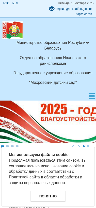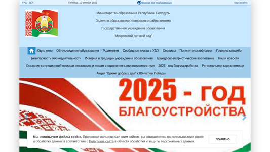 | AI-анализ | This online resource is titled "Мохровский детский сад" (Mohrovsky detski sad, Mohrovsky children's garden). It is an educational website for a children's garden located in Ivanovo, Belarus. The website contains information about the kindergarten's schedule, news, and location, as well as articles to read and links to related institutions. The top keywords for this site include "образования" (education), "2025", "йская" (Ivanovo), "читать" (read), "далее" (further), and "нская" (Novoselitsa), among others. The website uses cookies and is available in Belarusian and several other languages. |