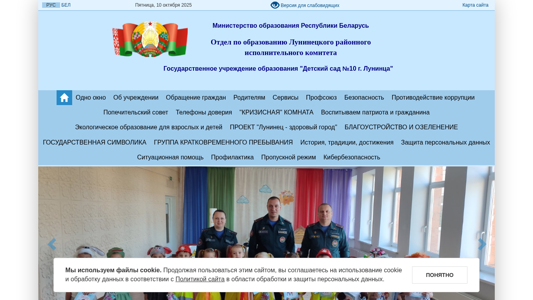 | AI-анализ | The website <sad10.luninec.edu.by> is the digital presence of the "Detsky Sad №10" kindergarten in the city of Luninets, Belarus. The title of the website indicates its name and location. The description is not provided, but based on the top_words, it can be inferred that the website offers information about the kindergarten, its educational programs, and possibly its schedule and contact details. The keywords include "education," "kindergarten," and "Luninets," further supporting this conclusion. The website uses cookies and adheres to the site's privacy policy. The top_words suggest that there are sections for administrative procedures, licensing, and contact information, among others. The language of the website is Russian and Belarusian. |
