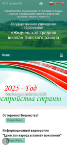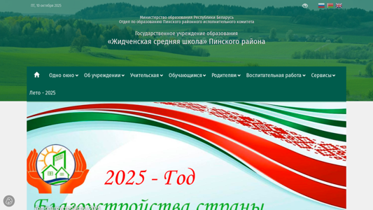 | AI-анализ | --- The portal 'Жидченская средняя школа' (Jidche.roo-pinsk.gov.by) is a website for a secondary school located in Pinsk region, Belarus. It provides information about the school's schedule for personal meetings with citizens and legal entities, contacts for the educational institution and its educational office, as well as the schedule for direct phone lines. The website also offers electronic application forms and information on legal frameworks, rights and obligations for interested parties during administrative procedures. Other sections include a rating assessment portal, frequently asked questions, a telephone directory, and an interactive map of "One Window" services in Belarus. The website also covers information on the institution's location, working hours of nearby banks, and details of the educational institution's management, structure, and goals. Additionally, there are sections on the school's history, organizational structure, |