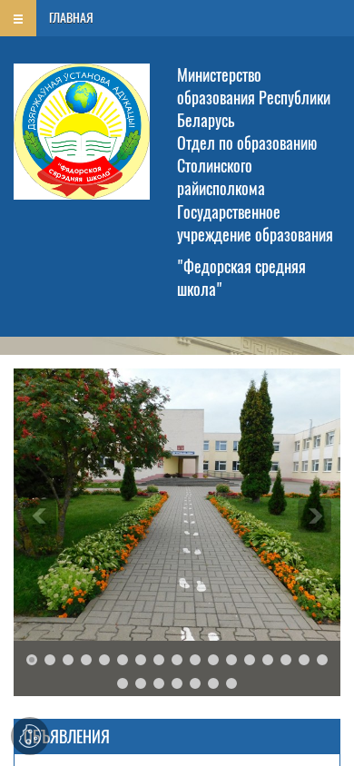 | AI-анализ | The website Fed.roo-stolin.gov.by belongs to a school named Федорская СШ (Fedorskaya SS) in Belarus. The title of the website is "Федорская СШ" (Fedorskaya SS). The description is missing. The most frequently used keywords on the website are '2025', 'экскурсия' (excursion), 'подробнее' (in detail), 'беларусь' (Belarus), 'образования' (education), 'йская' (I), 'школа' (school), 'акция' (action), 'октября' (October), 'нская' (N), 'день' (day), 'помнит' (remembers), 'средняя' (middle), 'гуо' ( |