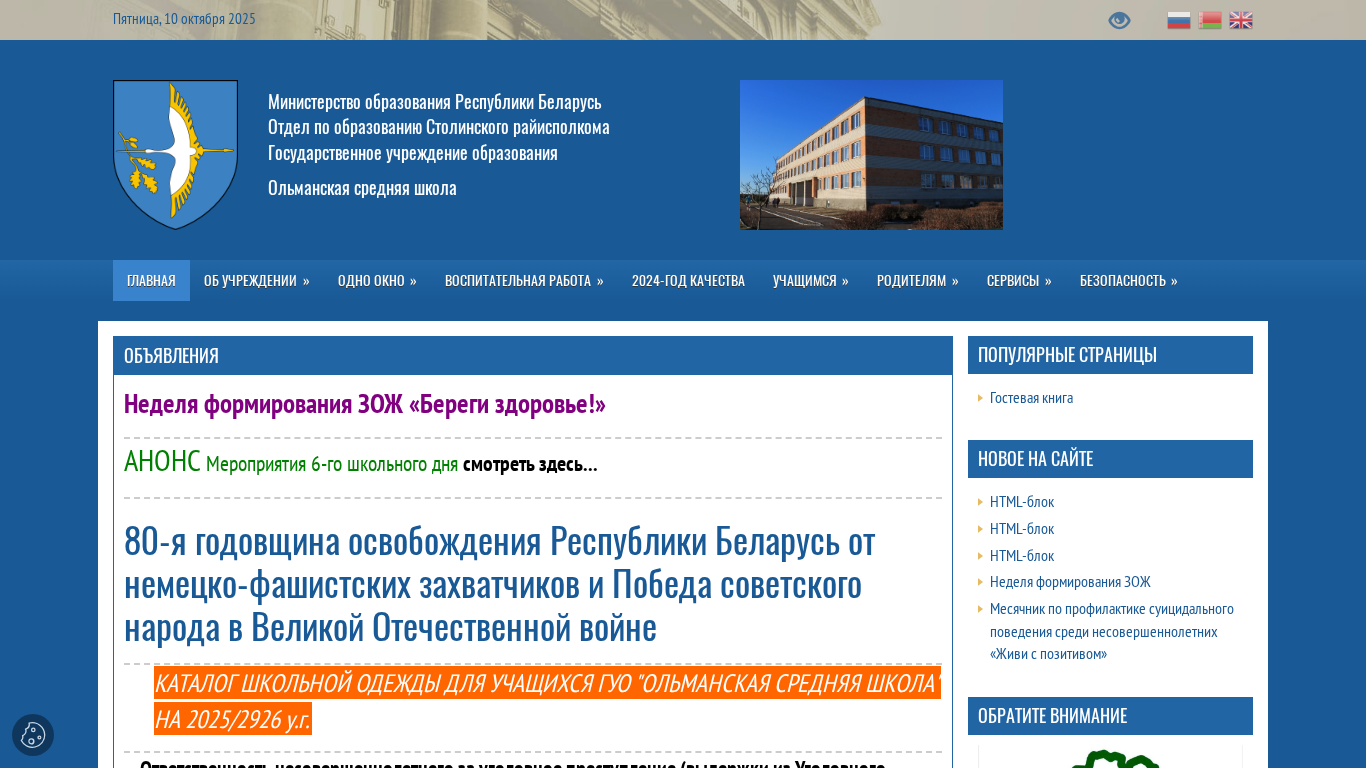 | AI-анализ | The portal Ольманская СШ (olm.roo-stolin.gov.by) is a Belarusian educational website dedicated to the Olmanskaya School. The site provides information on the school, its history, news, and educational programs. The keywords include 'school', 'information', 'news', 'education', and 'Belarusian'. The most frequently used words are 'подробнее' (detailed), '2025', 'ольманская', 'республики', 'беларусь', and 'школа'. The site is available in Belarusian, Azerbaijani, and Russian languages. |