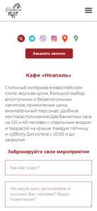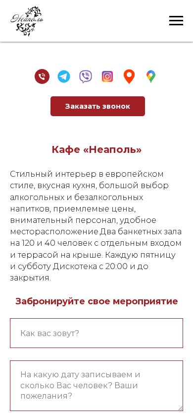 | SEO-описание | Уютное кафе «Неаполь» поможет забронировать столик и провести ваше мероприятие любой сложности: свадьбы, день рождения или юбилей, корпоратив или деловой ланч. |