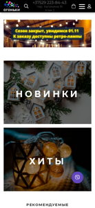 | AI-анализ | --- The website Ogonki is an opt (wholesale) business located in Minsk, Belarus, selling various types of decorative light strings. The title of the website is 'Гирлянды светодиодные купить в Минске - Ogonki' which translates to 'Buy LED string lights in Minsk - Ogonki'. The main keywords include 'гирлянды' (string lights), 'купить' (buy), 'диодная' (LED), 'опт' (wholesale), and 'каталог' (catalog). The website offers a variety of light strings such as traditional, retro, outdoor, interior, professional, and battery-operated ones. Other products include laser projectors, Christmas decorations, and gifts. The contact details provided are a phone number and an address. The website |