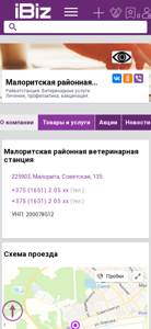 | AI-анализ | The web project "Малоритская районная ветеринарная станция - Райветстанция" offers veterinary services in Малорита, Belarus. The station provides treatment, prevention, and vaccination for animals. The contact information, including phone numbers and an address, is listed as 225903, Советская, 135. The business operates from Monday to Friday, 9:00 AM to 6:00 PM, with no breaks for lunch. There is a scheme for reaching the location provided on the page. The company is categorized under "Ветеринарные услуги, уход за животными" in the Yandex Business Directory. |
