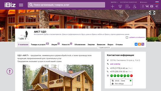 AI-анализ | The website is for a Belarusian company named АИСТ ОДО, located in Sмолевичи, offering services related to the production and sale of wooden houses, logs, furniture, and building materials. The company specializes in the manufacture of wooden houses using profiled timber and logs, as well as the production and sale of various building materials and furniture made of logs. The website provides information on the company's location, contact details, and the wide range of services and products they offer, including construction of wooden houses, log homes, log furniture, and log house finishing. The site also features typical project designs, and guarantees high-quality results at relatively low prices. |