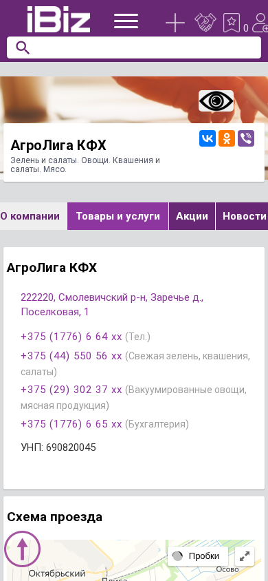 | Название / Заголовок | АгроЛига КФХ - Зелень и салаты. Овощи. Квашения и салаты. Мясо.. 222220, , Заречье д., Поселковая, 1 |