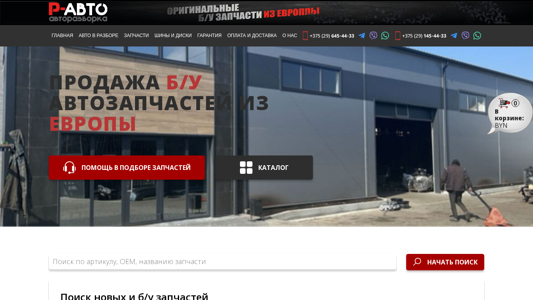 | AI-анализ | This website, titled "Автозапчасти Б/У из Европы" (Used Auto Parts from Europe), offers used automobile parts for sale. The description mentions no specific services or guarantees, only the sale of used parts. The keywords include "used parts," "Europe," "autozapchasti" (auto parts), and various car makes and models. The top_words suggest a focus on diesel and mkpp (manual transmission) parts, as well as Volkswagen, Mercedes, and Opel. The contact information includes several phone numbers and a Belarusian city and address. The site appears to offer a catalog search for parts, with options to select car make, model, generation, and type of part. The last section lists some available parts for various makes and models, including Honda Civic, Opel Astra, Ford C-max, A |
