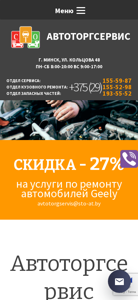 | AI-анализ | --- This online resource is dedicated to the Autotorgservis service center in Minsk, Belarus, located at ul. Koltsova 48. The website offers various types of auto repair services with a team of specialists in different fields. The full range of services includes bodywork repairs, tire services, brake system repairs, muffler replacements, clutch replacements, car painting, and air conditioner refills. The center also offers a 27% discount on Geely car repair services. The contact information provided includes phone numbers for the service, bodywork, and parts departments. |