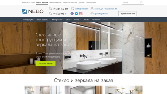| AI-анализ | The web project "Steklo i Zerkala na Zakaz" (Glass and Mirrors on Order) is a website based in Minsk, Belarus, dedicated to the custom-made production of mirrors and glass structures. The company offers a wide range of services, including the manufacturing of showers, mirrors, glass partitions, doors, and other glass structures based on individual designs and measurements. The website provides information on their production capabilities, materials used, and pricing, as well as contacts for placing orders by phone or visiting their salon. The site features numerous photos of their completed projects and offers a calculator for estimating costs. The domain name is steklo.nebo.by. |