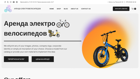| AI-анализ | The web project "Велоаренда" (Velorenada in English) is an e-commerce platform that offers rentals of electric bicycles. The website includes sections for a catalog, pricing information, a blog, and a contact page. Users can add items to a cart and view their total cost. The site also offers custom printing services, including designs on T-shirts and other items, such as caps and cups. The business operates from 10:00 to 20:00 and offers online ordering 24/7. The site includes options for users to compare and add items to a wishlist. The domain is veloarenda.by. |