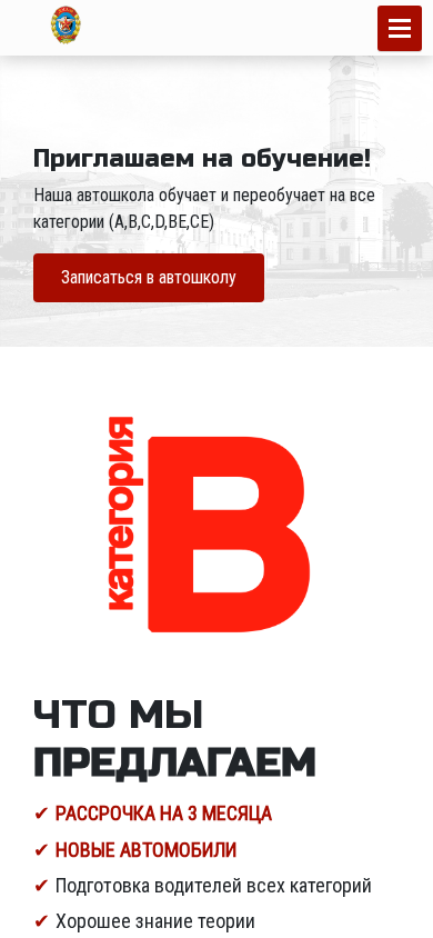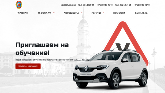 | AI-анализ | --- The website is for the Autoshool of the DOSAAF in Mogilev, Belarus. It invites visitors to enroll in driving courses for various transportation categories. The school offers both initial training and re-certification. The contact details, including phone numbers, are provided for those interested. The pricing and schedule for the courses are also listed. The website includes sections for rocket model sport, rifle shooting, and auto racing. The organization's mission is to support the defense of the Republic of Belarus and to provide patriotic education to citizens. |