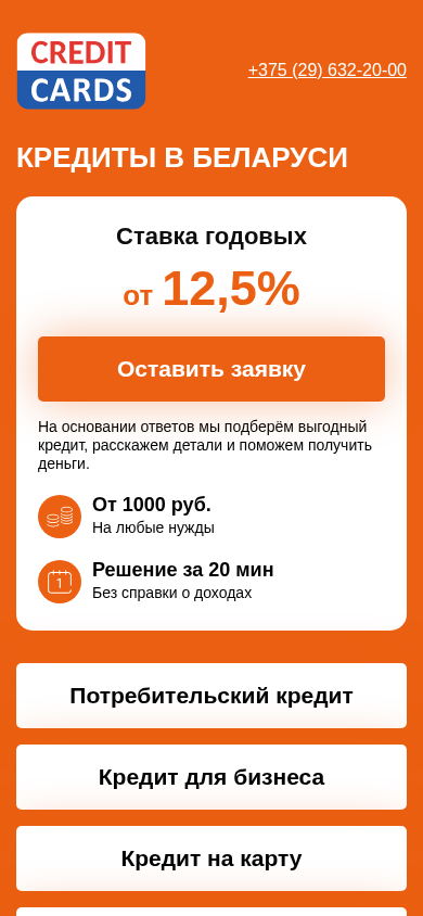 | Название / Заголовок | Кредиты в Беларуси. Онлайн на карту до 60 000 рублей |