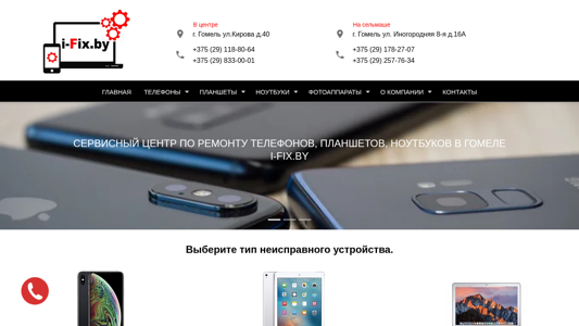 | AI-анализ | --- The portal i-fix.by offers a quick repair service for smartphones, tablets, laptops, computers, and other digital technology in the city of Homel, Belarus. The repair quality is good, and prices are reasonable for repairs of all complexities. Visitors can find information on repair costs for Apple, Xiaomi, Huawei, Honor, and Samsung devices, as well as tablets, laptops, cameras, and other tech items. The company offers a warranty of up to 4 months and free diagnosis, even in cases where repair is declined. With over 10 years of experience in repairing telephones, tablets, and laptops, i-fix.by provides answers to all repair-related questions. The service center is located in the center of Homel on Kirov Street 40, and on Inogorodnaya Street 8-я d.1 |