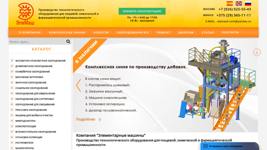 | AI-анализ | --- This website belongs to ООО "ЭлеМаш" (company "Элементарные машины"), a major producer of equipment for the food, pharmaceutical, and chemical industries. The company's offerings include production technology equipment, specifically for the food sector. Visitors can find information on various types of equipment such as those for mixing, baking, and more. The website also features a catalog, contacts, and news sections. The company's focus is on developing and manufacturing advanced technological equipment. Using its extensive experience, the team continually improves existing models and creates new ones. They employ original designs and the latest computer technologies to produce various types of machinery, including packaging and conveyor systems, heat processing equipment, and more. The company collaborates with both domestic and international partners in equipment supply and sales. |