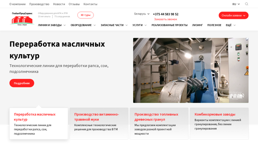 | Название / Заголовок | Перерабатывающее оборудование для агропромышленного комплекса |