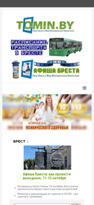 | AI-анализ | --- The portal TOMIN.BY offers news, information, advertising, finance, and is a portal for Brest. Key topics include Brest news, cinema schedules, transportation schedules, and finance. The most frequently used words on the site are 'October', 'Brest', '2025-10-10', 'Belarus', 'Brest', 'Brestska', 'queues', 'weekends', 'Belarusian', 'border', and 'fishing'. The site features sections on local news, schools for mothers, natural wonders, questions for a notary, online fishing, transportation schedules, hotlines, local events, consulates, maps, churches, currency exchange, and archives. Other topics include Brest, Brest region, Belarus, society, mir around the world, incidents, crime, economy, health and sports, border, serving |