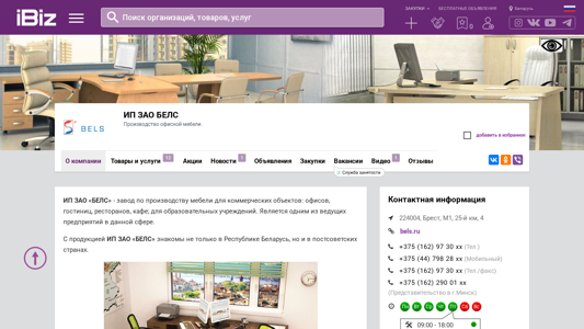 | Название / Заголовок | ИП ЗАО БЕЛС - Производство офисной мебели. . 224004, Брест, , М1, 25-й км, 4 |
