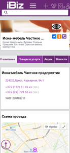 | AI-анализ | The portal "Iona-mebel" is a private enterprise specializing in the sale of kitchens, built-in cabinets, children's furniture, bedrooms, living rooms, office furniture, and libraries. The website provides information about the company, its products and services, contacts, and a scheme for reaching the location in Brest, Belarus, at Kariernaya 9A-1. The company offers new acquisitions, discounts, news, vacancies, videos, and customer reviews on Vkontakte and Odnoklassniki. The business hours are from 09:00 to 17:30, Monday to Saturday, without lunch breaks. The company can be found in the "Furniture" category and also in the "Furniture in Brest" section. |