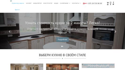 | SEO-описание | Кухни на заказ в Бресте ☆ Фото и цены ➤ Каталог $ Рассрочка ✓ Бесплатный калькулятор расчета стоимости и 3D конструктор кухни онлайн ➤ Заходите! |