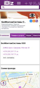 Название / Заголовок | БелМонтажСистемы ООО - Видеонаблюдение. Охранная сигнализация. Пожарная сигнализация. Электрика. Огнезащитная обработка материалов.. 224022, Брест, , Суворова, 104, пом. 53 |