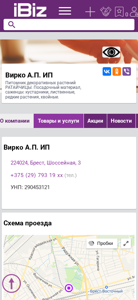 | AI-анализ | The web project "Virko A.P. IP - Ратайчицы Декоративный сад" is a plant nursery specializing in the sale of decorative plants, offering a variety of products including potted materials and seedlings of shrubs, leafy plants, rare species, and conifers. The business is located in Brest, Belarus, at Шоссейная Street, number 3, with contact information provided as +375 (29) 793 19 xx and the Unified State Register of Enterprises number 290453121. The website includes a map for directions and operates Monday through Sunday, from 8:00 AM to 10:00 PM without lunch hours. The company offers a range of products and services under the categories of seeds, saplings, and potted |