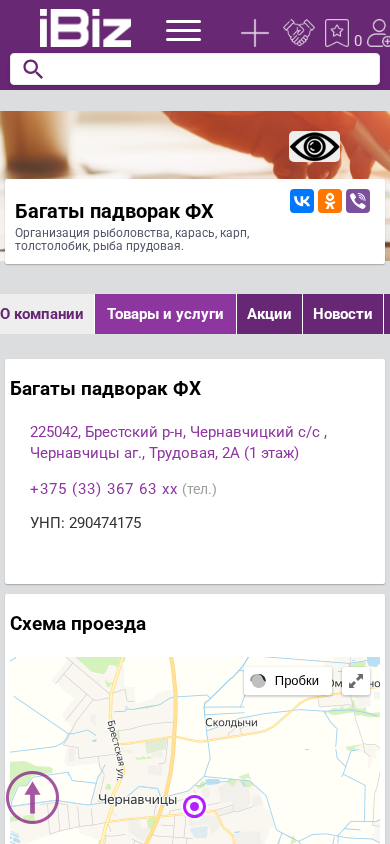 | AI-анализ | The website is for "Багаты падворак ФХ" (Rich Fishery FH), an organization for fish farming specializing in carp, carp, sturgeon, and pond fish. The address and contact phone number are provided, along with opening hours (Monday to Saturday, 9:00am - 6:00pm, closed on Sundays). The site offers various services and products related to fishery, including company information, goods and services for sale, vacancies, videos, and customer reviews. The site also provides a map for directions and information on usage conditions. Users can create their own map, check for traffic, and access a statistics section. The site is part of the "АЙБИЗ МЕДИА" catalog of businesses and organizations in Belarus. |