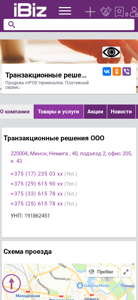 | Название / Заголовок | Транзакционные решения ООО - Продажа mPOS терминалов. Платежный сервис.. 220004, Минск, , Немига , 40, подъезд 2, офис 205, к. 43 |