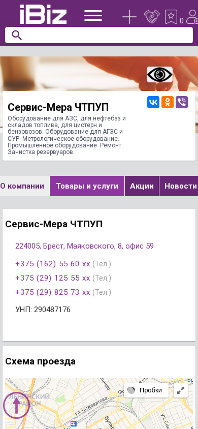 | Название / Заголовок | Сервис-Мера ЧТПУП - Оборудование для АЗС, для нефтебаз и складов топлива, для цистерн и бензовозов. Оборудование для АГЗС и СУР. Метрологическое оборудование. Промышленное оборудование. Ремонт. Зачистка резервуаров.. 224005, Брест, , Маяковского, 8, офис 59 |
