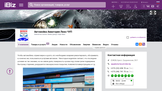 | Название / Заголовок | Автомойка Акватория Люкс ЧУП - Химчистка салона. Мойка днища. Кафе Аква.. 224028, Брест, Гродненская, 29/1 |