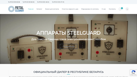 | AI-анализ | The web project "SteelGuard Equipment and Chemicals for Stainless Steel" is dedicated to providing equipment and chemicals for the cleaning, etching, and passivation of stainless steel. The contact information includes three phone numbers for Belarus. |