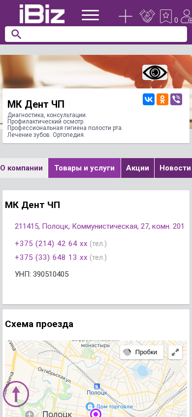 | Название / Заголовок | МК Дент ЧП - Диагностика, консультации. Профилактический осмотр. Профессиональная гигиена полости рта. Лечение зубов. Ортопедия. . 211415, Полоцк, , Коммунистическая, 27, комн. 201 |