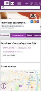 Название / Заголовок | Витебская облветлаборатория ЛДУ - Диагностика болезней животных. Безопасность кормов. Безопасность пищевой продукции.. 210001, Витебск, , 11-я Свердлова, 15А |