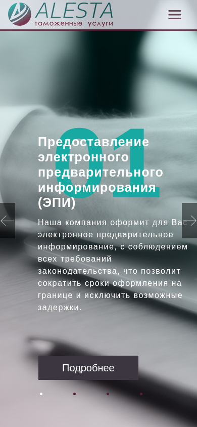 The website "Alesta" is a business platform offering various customs services. Its main keywords include 'ipsum', 'qui', 'компания', 'map', 'всех', 'dolor', 'sit', 'услуг', 'сроки', 'оформления', 'lorem', 'amet', 'consectetur', 'adipisicing', 'elit', 'culpa', 'enim', 'iste', 'unde', 'veniam'. The website provides services for electronic pre-notification, letters of guarantee for customs transit, customs declaration T1, and electronic export manifest (e-Manifest). The company emphasizes its modern solutions and a team of experienced professionals working 24/7 to minimize client efforts in obtaining necessary documents for transportation. Alesta is a developing company in the field of customs services, prioritizing quality and quickest turnaround times