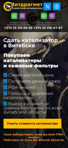 | AI-анализ | This website is a catalytic converter buying and evaluation service based in Vitsebsk, Belarus. The company, Vitdragmet, offers higher than market prices for catalytic converters and promises quick cash payments. The website provides phone numbers for customers in Vitsebsk and its surrounding areas, as well as in Polotsk and its surrounding areas. The company buys catalytic converters and diesel filters, and offers on-site assistance for their removal. The website offers a free RFA analysis and provides a form for customers to request a call or quote. The company boasts quick payment, typically within 10 minutes, and the return of documents along with the cash. The website also mentions that the entire process from evaluation to payment takes no more than 10 minutes. The company operates throughout the Vitsebsk region. |