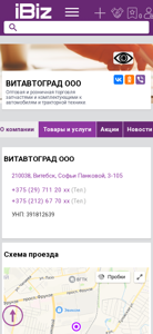| AI-анализ | This online resource is dedicated to Vitavtograd OOO, a company based in Vitiebsk, Belarus, specializing in the retail and wholesale trade of automobile and tractor parts and components. The website provides information on the company's location, contact details, and offers a range of products and services related to auto parts and accessories. Users can browse through various categories, view company information, and contact Vitavtograd OOO directly through the provided phone numbers. The domain includes sections for news, vacancies, and customer reviews on social media platforms. The company's UNP number is 391812639. The website is accessible from Monday to Friday, 9:00 AM to 6:00 PM, with no lunch break. |