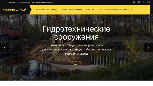 | SEO-описание | "Оберегстрой" - это технологии и материалы для берегоукрепления, причалов, гидротехнических сооружений, водоемов и бассейнов. |