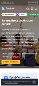 | AI-анализ | The portal ProfGid is a consultancy and testing service for children and adults, helping them choose a profession based on their cognitive abilities, character traits, and interests. With over 19 years of experience and more than 35,000 clients, ProfGid offers personalized consultations and a variety of tests to determine the best-suited careers. The website provides information on various professions, their requirements, and the process of applying to universities or colleges in Russia and abroad. The ProfGid team consists of professionals who aim to assist individuals in making informed decisions about their future careers. The website offers both online and offline consultations, with a one-time fee for a two-hour session. ProfGid caters to clients from various countries, including Russia, Canada, China, Kazakhstan, the USA, Ukraine, Belarus, France, and the UK. |