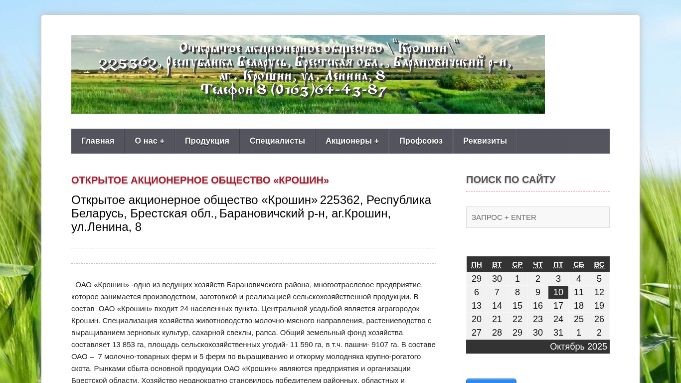 | Адрес | г.Крошин, ул.Ленина, 8 |
