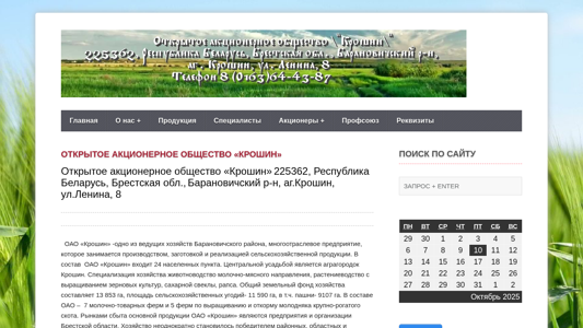 | AI-анализ | This online resource belongs to ОАО Крошин (OAO Kroshin), a Belarusian company. The website provides information on the company, including details on shareholder meetings in 2025, operational data, and periodic reports from 2018 to 2024. Keywords associated with the site include "OAO", "Крошин", "dividends", "shareholders", "registration", and "reporting". The top words used on the site are related to the years 2025, 2018-2024, and the words "год" (year) and "выплата" (payment). The site contains sections for shareholder meetings, operational information, and normative documents, including annual reports and auditor's conclusions. |