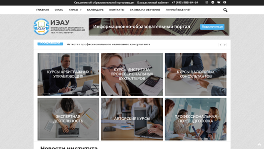 | AI-анализ | The website "Institut of Economy and Crisis Management" (ieay.ru) is an educational institution offering courses for tax consultants, accountants, arbitrage managers, and specialists in crisis management. The website features sections on courses for arbitrage managers, professional accountants, tax consultants, professional development, author courses, a calendar, contacts, and a personal cabinet. The institute offers a certificate for professional tax consultants, a certificate for the chief accountant of individual entrepreneurs, and a unified program for the training of arbitrage managers. The institute also offers courses for arbitrage managers, courses from the institute of professional accountants, courses for tax consultants, expert activities, and professional development. The website includes news from the institute, with upcoming events featuring the chairman of the Subcommittee on Crisis Management of the Committee on Entrepreneurial Safety of the Russian Union of Industrialists and Entre |