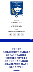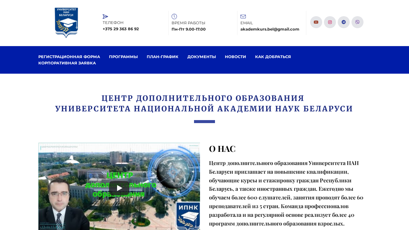 | AI-анализ | This online resource, academkurs.by, is the website for the Center for Additional Education of the University of the National Academy of Sciences of Belarus. It offers opportunities for qualification enhancement, training courses, and internships for citizens of the Republic of Belarus and foreign nationals. The center annually educates over 600 students, with over 60 teachers from five countries. The team of professionals has developed and regularly implements over 40 programs for adult education. The website provides information on registration, programs, schedules, documents, and news. It also includes a corporate application form. The Center for Additional Education of the University of the National Academy of Sciences of Belarus invites individuals to improve their qualifications. |