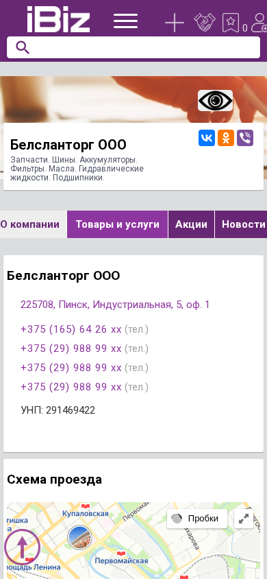 | Название / Заголовок | Белсланторг ООО - Запчасти. Шины. Аккумуляторы. Фильтры. Масла. Гидравлические жидкости. Подшипники.. 225708, Пинск, , Индустриальная, 5, оф. 1 |